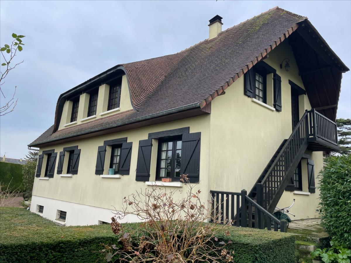 Bourg à 3 kms de OUISTREHAMA DECOUVRIR, Belle maison cossue d’environ 190 m² sur magnifique terrain arboré et paysagé de 2 032 m².Au rez-de-chaussée, une entrée va desservir un beau volume de séjour salon avec cheminée, cuisine aménagée pouvant être ouverte sur l’espace de vie pour une surface de l’ordre de 45 m², belle véranda chauffée bien exposée.Suite parentale avec salle de bains et une autre chambre, salle d’eau.A l’étage (accessible également par un escalier extérieur), séjour, cuisine séparée, deux chambres dont une avec balcon, salle de bains avec wc.Possibilité d’aménagement selon vos désirs.Sous-sol complet.Remise au goût du jour à prévoir.Proche commodités et mer.DPE DLes informations sur les risques auxquels ce bien est exposé sont disponibles sur le site Géorisques : www.georisques.gouv.fr